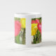 Esta increíble taza muestra una fotografía de tulipanes rojos y amarillos. La foto fue tomada con macrofotografía, resultando en un detalle tan brillante que se pueden ver los pequeños márgenes y cambios sutiles en la luz que actúan sobre el tulipán rojo central.