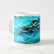 Taza De Café Grande Turquesa, negro, blanco 'Waves' Jumbo Mug