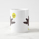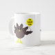 Esta increíble taza presenta un personalizado gracioso de un pavo con grandes ojos negros, un pequeño pico amarillo y plumas de cola pegadas. Los pies se encuentran en direcciones opuestas, lo que hace que el pavo parezca torpe. El pavo sostiene un globo amarillo con un mensaje dentro que dice "es hora de Turquía". Este es un divertido diseño fiesta de acción de gracias.