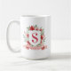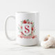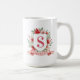 This Christmas mug design has a preppy grandmillennial design featuring a floral crest surrounded with berries with a monogram letter in the center.