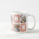 Make her smile with this Granny Photo Collage Retro Text Coffee Mug, a sweet and stylish keepsake made just for grandma. Featuring a charming photo collage with a 6 picture template, this mug lets you showcase favorite moments of grandkids and grandma in alternating frames. The soft peach background paired with bold white retro text spelling GRANNY adds a fun, nostalgic touch. Perfect for a birthday or any special occasion, this keepsake mug is a thoughtful gift for her, celebrating every loving grandmother and the bond she shares with each grandchild in a truly stylish way.