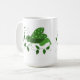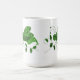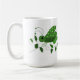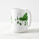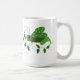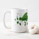 Un diseño fresco con un saltamontes verde entre hojas verdes y viñas. Una taza de café inspirada en la naturaleza.