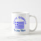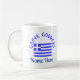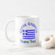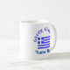 Personalized design shows the Flag of Greece and the words GREEK GODDESS above, in blue letters on two sides of coffee mug. Add a name underneath to personalize your coffee mug or create a customized gift. Fun for Greek-Americans, Greek Canadians, or anyone with Greek heritage, ancestry or culture. YIASSOU! The flag is blue and white stripes with a blue cross on a white background in the upper left area.