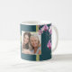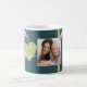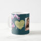 Show mom she is loved with this customizable photo coffee mug. Featuring a heart shape vignette, heartfelt "I love you mom" message and your favorite photo of her framed by elegant purple orchids against an elegant teal green background. She will, for sure, want to use your thoughtful gift every day.