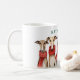 Cute Greyhounds and Whippets in Winter Scarves Coffee Mug presenta un dulce ilustracion de 5 adorables crías, usando bufandas verdes y rojas. ¡Uno está siendo un poco descarado! :-) Si necesita ayuda con el diseño o productos que coincidan, por favor contáctenos en bkthompsondesigns@gmail.com.