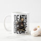Este diseño es perfecto para cualquiera que ame su café casi tanto como su vida. Con un ilustracion humorístico del pañal mugriento sentado entre patas, helándose y vertiéndose una taza de café de una olla moka, este diseño le agrega un toque de humor negro a su armario. El texto "MUERTE ANTES DE DECAF." es una declaración audaz que resonará en cualquier verdadero adicto al café. Es un regalo ideal para baristas, amigos de cafeína o para todo aquel que aprecie el arte gótico y divertido, este diseño único es una buena manera de mostrar tu amor por el café y tu estilo atrevido.