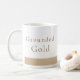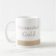 Clean white surface accented by a taupe band along the base and soft gold serif lettering reading “Grounded Gold.” The balanced layout and warm neutral tones make it well-suited for morning coffee, desk use, or open-shelf display in calm, modern kitchens and workspaces.