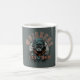 Agarra a la mamá de un gato con un gatito de aspecto duro en un gorra con manchas y manchas de garra.