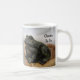 Una rana fresca sentada en una canasta de mimbre acentúa esta taza de café. El mensaje dice 'verde está en' que se puede cambiar si así se desea.