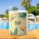 Taza De Café Guión de Monograma Floral de Palm Foliage Tropical