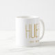 Taza de café con guión de oro para aniversario de bodas personalizado. Fácil de personalizar. ¡Feliz aniversario!
