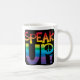 Las palabras coloreadas arco iris " HABLAN PARA ARRIBA!" con un signo de la paz.