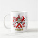 Escudo de armas de la familia del hacendado (escudo) incluyendo la historia y el significado del nombre del hacendado en una taza de cerámica del café/del té. Cada taza tiene dos imágenes de su escudo de armas (uno en cada lado) y la historia y el significado del nombre del hacendado (en el centro). La taza de cerámica es caja fuerte de la microonda y del lavaplatos. Usted puede ahora exhibir orgulloso su herencia mientras que sorbe su bebida, o utilícela como trozo de conversación. También hacen los grandes regalos para los amigos y la familia. Esta imagen se puede utilizar en cualquier otro producto de la taza y del stein de Zazzle. Para más información o con sus comentarios envíe el correo electrónico a heraldry505@gmail.com
