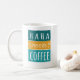 Jaja Necesita Café Mug. Este lindo tazón de café hace el regalo perfecto para cualquier madre cuyos hijos la llamen Haha en lugar de mamá. (Jaja significa madre o madre en japonés.) Este divertido tazón de café dice "ja, ja, necesito café". Tiene un fondo blanco con gráficos verde azulados / turquesa / aqua y amarillos.