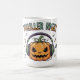 Un poco espeluznante, un poco picante, un poco cursi... Esta taza con temática de Halloween con el texto "Thriller Night" que incluye una cabeza de calabaza naranja con auriculares es genial para los amantes de la música y el horror.