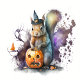 Diseño de Halloween con un bonito ilustracion con una ardilla acuática con calabaza. Adorable ilustracion de Halloween.