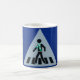 HAMbyWhiteGlove - Colectible Mugs - Esta es una foto de un cartel que contiene una imagen gráfica negra de una persona cruzando un cruce de pasos. La adición de una pequeña bufanda verde y blanca sugiere que el artista que fue encargado de esta pieza estaba completamente aburrido, no en su mente correcta, o decidido a dejar su marca en el mundo.