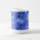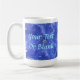 Un oro brillante Hanukkah menorah y un texto que dice "Feliz Hanukkah" en azul brillante y blanco superpuesto en una imagen fractal azul y blanco que recuerda a copos de nieve en una tormenta. ¡Chag Sameach! Añade tu propio texto adicional.