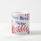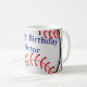 Taza De Café Happy Birthday Blue & White Stripe Baseball