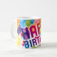 Bright, bold, and full of celebration, this festive birthday mug features a lively “HAPPY BIRTHDAY” design in multicolored block letters surrounded by cheerful balloons, stars, streamers, and confetti. The crisp white ceramic makes the colors pop, creating a joyful, party‑ready look that instantly lifts the mood. It’s the perfect gift for birthdays of any age — fun, upbeat, and guaranteed to make their special day feel even brighter.