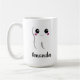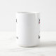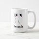 Una taza con un dibujo de un gran diente blanco con una sonrisa kawaii linda y grandes ojos felices.