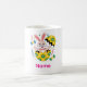 A super fun and festive illustration of a cute bunny with a bow tie popping out of a yellow floral egg, surrounded by colorful candies and confetti. This joyful design is perfect for kids' Easter party favors, laptop stickers, and festive magnets. Celebrate the holiday with a burst of color and sweetness!