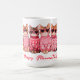 Esta imagen muestra una taza de cerámica blanca con un ilustracion de cuatro gatos sentados uno al lado del otro. Cada gato lleva un jersey rosa o rojo diferente con patrones de corazón, y todos llevan gafas de sol en forma de corazón. Debajo de los gatos, el texto "Happy Meowentines" está escrito en un guion rojo juguetón. Esta taza es interesante y relevante ya que combina los temas de gatos y El día de San Valentín, lo que la convierte en un regalo lindo y festivo.