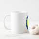 Una cara feliz de luna amarilla con un gorra azul y blanco. Este diseño parece realmente efectivo en estos Mug