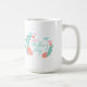 Happy mother's day text, bluebird on green branch and pink flowers.