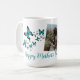 Beautiful blue & black butterflies surround a photo on this cute Mother's Day Mug! Add your own cute photo!