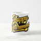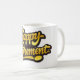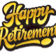 This cheerful white ceramic mug features bold, sunny yellow lettering outlined in black that proudly reads “Happy Retirement.” The high‑contrast design pops beautifully against the clean white background, creating a bright, celebratory look that feels joyful and uplifting.