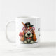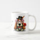 This adorable basset hound-type puppy wants to know "Will you be my Valentine?" There are two images, one on each side of the mug. Text is in between the images and can be changed. AI assisted graphic purchased with commercial use. Artwork: RedHeronLighthouse