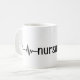 Obra de arte minimalista con una línea de latido cardíaco con la palabra "enfermería", que termina en un estetoscopio. Representa la atención médica, la atención y la profesión médica en un diseño simple, en blanco y negro.