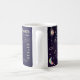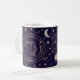 Virgo horoscope diseño de signos astrológicos zodiacos con estrellas de estilo holográfico lunas planetas de sol sobre un fondo morado azul profundo. Un diseño único que abarca toda la taza incluye nombre, símbolo, constelación y datos nutricionales divertidos sobre el signo zodiaco de Virgo. Un regalo divertido para alguien nacido entre el 23 de agosto y el 22 de setiembre bajo el signo de la Tierra de Virgo.