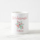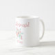 Esta taza de café de 11 oz es una encantadora dama de honor y cuenta con "dama de honor" escrita en la parte superior con una bonita letra rosa. Debajo de la rúbrica hay un ramo de hermosas flores rosas y azules. Debajo de las flores hay una plantilla para insertar el nombre de la dama de honor. ¡Compra tu taza de café de dama de honor hoy! Material gráfico creado por: AMBilustrations http://www.etsy.com/shop/AMBillustrations/