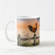 Taza De Café Hermoso Rooster sobre la cerca y el pantano de las
