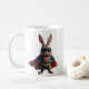Héroe conyugal: Salvando el Día clásico del café Mug, taza de café adolescente mostrando un conejo superhéroe delante, genial superhéroe conejito
