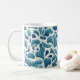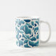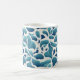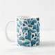 Taza De Café Hojas abstractas blancas y azules | Patrón costero