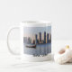 Una navegación del dhow para el puerto en Doha, Qatar, con el nuevo horizonte del emirato del petróleo y gas en el fondo.