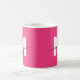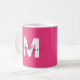 Personalized Modern Glamorous Magenta Hot Pink Initial Name Monogram Coffee Mug. This stylish mug combines a modern minimalist vibe with a glamorous, personal touch, perfect for any coffee or tea lover. Featuring bold white initials on a vibrant magenta hot pink background and your name in sleek black typography, the luxury monogram appears on both sides for a standout look from every angle. With a chic and sophisticated feel, this mug makes an ideal gift for birthdays, housewarmings, holidays, or just because. It’s also a great choice for adding a vibrant, personal touch to your morning coffee routine.
