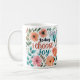 Rellene sus mañanas con esta Verde azulada y coral Inspiración Floral Autocuidado café Mug, que presenta la inspiradora cita "Hoy Elijo Alegría". Esta taza edificante sirve como un recordatorio diario para abrazar la felicidad y la positividad. Perfecto para rituales de autocuidado, café matutino, o como un regalo reflexivo para alguien que ama un toque de inspiración en su día.