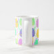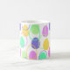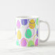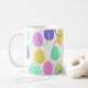 Esta taza tiene un diseño de Pascua de huevos morados, amarillos, verdes, azules y rosas esparcidos por todas partes con sus contornos.