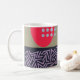 Esta taza tiene un diseño abstracto moderno de mediados de siglo con tres antecedentes diferentes, líneas de zigzag, ovales y círculos, en marina, azul claro, rojo, caqui y lavanda. Si quieres el mismo diseño con colores diferentes, envíame un mensaje.