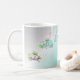 Celebre la Pascua con esta taza de colores pastel que presenta un diseño irónico de huevos de Pascua y un lindo conejito. ¡Ideal para el café, el té o el chocolate caliente!
