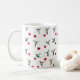 Cute Valentine Day's mug featuring hand-painted Ruby-throated Hummingbirds carrying hearts.