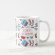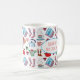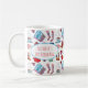 Este cálido diseño de cacao, un homenaje a los cálidos y acogedores días y noches de invierno, es ideal para niños y adultos. Celebra todas las comodidades de casa en invierno: hervidores de té, medias, mantas y tazas. Los dibujé a mano y pinté los diseños también a mano. Esta taza retro estilo arte folclórico escandinavo es divertido para tus Navidades tomar bebidas o en cualquier momento en que esté fresco y necesitas ese calentamiento. — Mary Kunz Goldman, artista