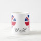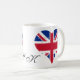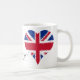 Este diseño presenta una bandera en forma de corazón pintada ligeramente angustiada del Reino Unido, Reino Unido, lugar con las palabras I y UK para indicar la frase que amo el Reino Unido o I Heart UK.