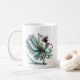 This ceramic coffee mug is shown with a sports ice skater art print.
