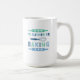 A cute coffee mug for the baker in your life with "I'd rather be baking" in a fun retro font with illustrations of rolling pins and a whisk in blue.