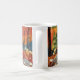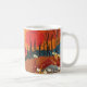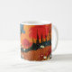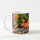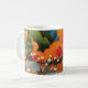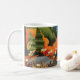Hermoso paisaje otoñal con árboles en brillantes naranjas y rojos. Flores blancas y el suelo del bosque.